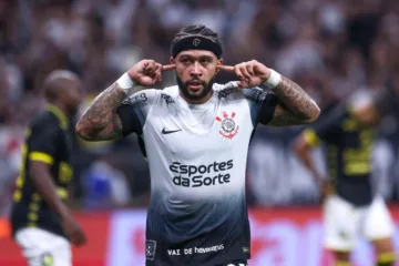 Depay comemora gol do Corinthians. Foto: Marcello Zambrana/AGIF (via AP)