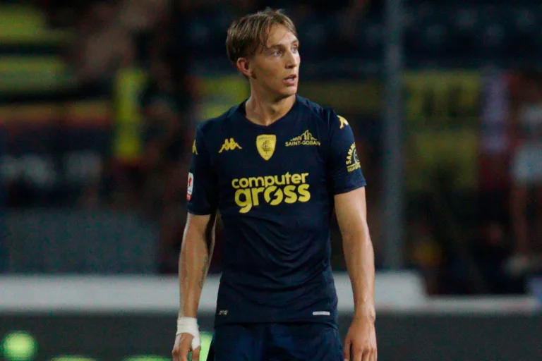 Em jogo oficial, Jacopo Fazzini (Empoli) no dia 10 de agosto de 2024 (© LaPresse / Alamy Stock Photo)