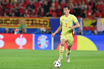 Robin Le Normand (3) da Espanha fotografado durante uma partida de futebol entre as seleções da Albânia e da Espanha na terceira rodada do Grupo B na fase de grupos do torneio UEFA Euro 2024, na terça-feira, 24 de junho de 2024 em Dusseldorf, Alemanha. (sportpix / Alamy Stock Photo)