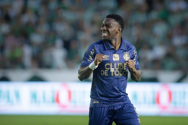 Francis Amuzu (Grêmio) em partida contra o Juventude, no dia 22 de fevereiro de 2026 (Crédito: Associated Press / Alamy Stock Photo)