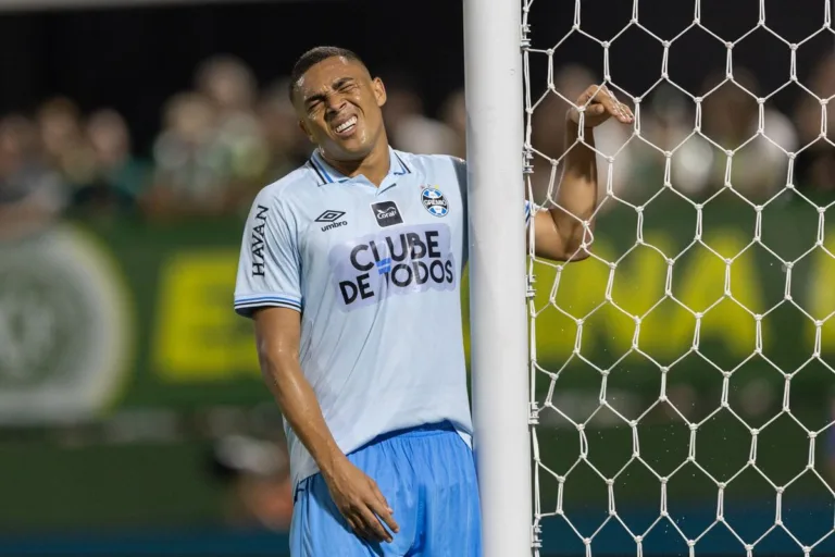 Carlos Vinícius (Grêmio) em partida contra a Chapecoense, no dia 16 de março de 2026 (Crédito: Associated Press / Alamy Stock Photo)