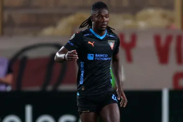 Em jogo oficial, Ricardo Adé (LDU Quito) no dia 3 de abril de 2024 (© PRESSINPHOTO SPORTS AGENCY / Alamy Stock Photo)