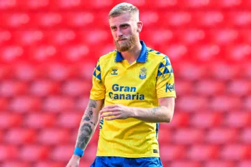 Em jogo oficial, Ollie McBurnie (Las Palmas) no dia 11 de agosto de 2024 (© News Images LTD / Alamy Stock Photo)