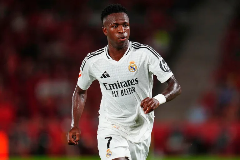 Em jogo oficial, Vinicius Junior (Real Madrid) no dia 18 de agosto de 2024 (© Sipa US / Alamy Stock Photo)