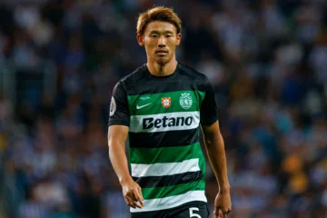 Em jogo oficial, Hidemasa Morita (Sporting) no dia 3 de agosto de 2024 (© Maciej Rogowski / Alamy Banco de Imagens)